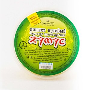 Хумус – это нутовый паштет, содержащий в себе всю пользу нута. Нут (турецкий горох) богат белками, которые легко усваиваются, а также сложными углеводами, что делает этот продукт питательным и лёгким для переваривания. Он благотворно влияет на сердечно-сосудистую систему организма, нормализует уровень сахара в крови, а также улучшает пищеварение благодаря высокому содержанию пищевых волокон. В этом горохе много кальция, магния, калия, он богат витаминами К и РР, метионином и триптофаном. Высокая энергетическая ценность нута позволяет смело употреблять его вместо мяса, принося пользу всему Вашему организму, поэтому нут незаменимый продукт для вегетарианцев, либо людей придерживающихся поста.
