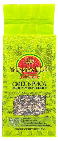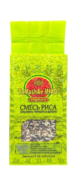 Смесь риса красный,бурый и черный TaMashAe MIADI выращен в Вьетнаме. Этот рис нешлифованный длиннозерный без глютена, отличающийся уникальным изысканным вкусом и приятным ароматом. Нешлифованный рис сохраняет все свои витамины и более полезен.