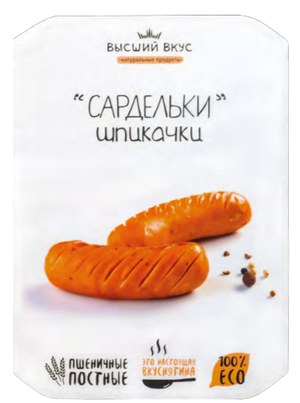 Все колбасные изделия, производимые специалистами компании «Высший вкус», уникальны, поскольку производятся из свежевымытого белка пшеницы. В сардельках «Высший вкус» сухие смеси не используются. Сардельки ООО «Высший вкус» аналогичны по вкусу традиционным сосискам, а по составу полезных ингредиентов превосходит аналоги.