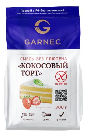 Смесь для быстрого приготовления безглютенового кокосового торта. Порадуйте своих близких и гостей тортом собственного приготовления! Продукт предназначен для всей семьи.