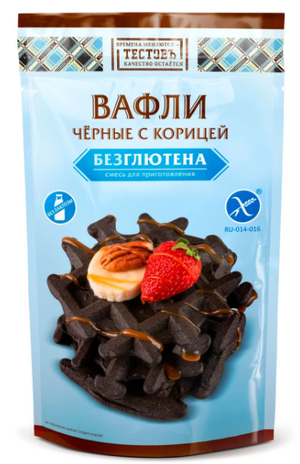 Необычные чёрные вафли для тех, кто любит удивлять! Мягкие внутри, с хрустящей корочкой и ароматом корицы. БЕЗГЛЮТЕНОВЫЕ смеси Тестовъ разработаны специально для тех, кто по тем или иным причинам решил отказаться от глютена в рационе. Смеси изготавливаются на обособленном производстве, где полностью исключён контакт с пшеничной мукой, а готовая выпечка не уступает по вкусу традиционной на пшеничной муке.