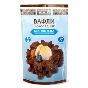 Вафли с насыщенным вкусом шоколада. Пышные и вкусные. Смесь не содержит глютена, лактозы и яиц. БЕЗГЛЮТЕНОВЫЕ смеси Тестовъ разработаны специально для тех, кто по тем или иным причинам решил отказаться от глютена в рационе. Смеси изготавливаются на обособленном производстве, где полностью исключён контакт с пшеничной мукой, а готовая выпечка не уступает по вкусу традиционной на пшеничной муке.