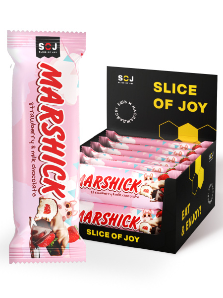 Вкусные шоколадные батончики с начинкой, где воздушный маршмеллоу в молочном шоколаде дополнен натуральным клубничным джемом. Это идеальное лакомство для любителей сладкого, которое приятно удивит своим сочетанием текстур и насыщенным вкусом.