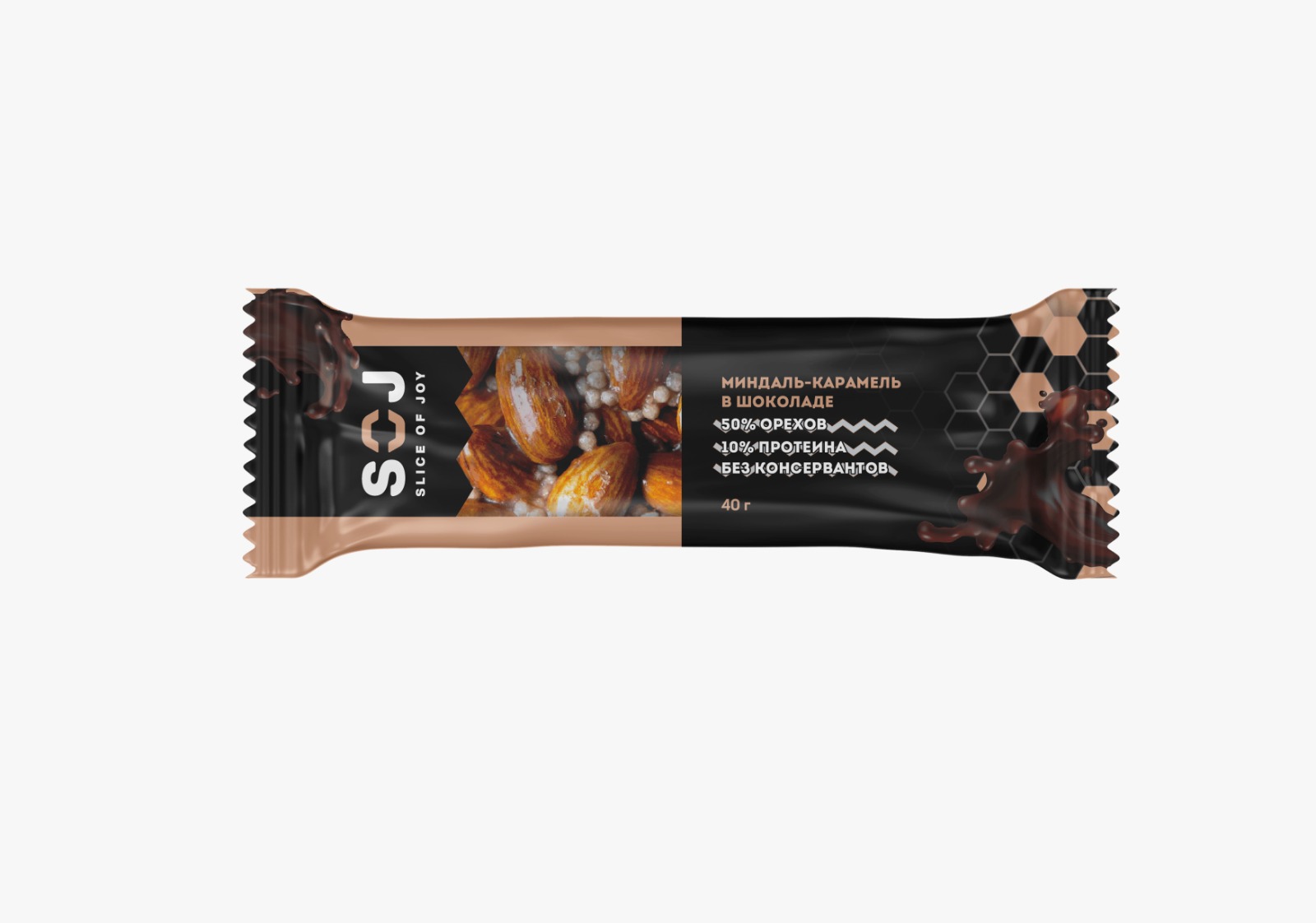 Ореховые батончики SOJ с миндалём, солёной карамелью и молочным шоколадо — идеальный выбор для сбалансированного перекуса в течении дня и заботы о фигуре.