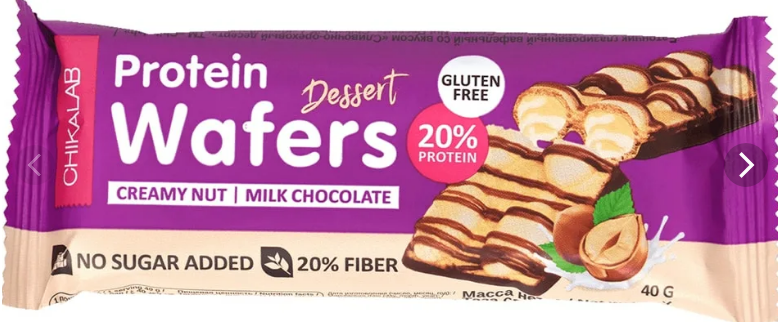 - Молочно-ореховая начинка (изолят сывороточного белка, водорастворимые волокна кукурузы, фундук, кокосовое масло, подсолнечное масло, молоко сухое обезжиренное, эмульгатор (соевый лецитин), ароматизаторы натуральные, антиокислитель (аскорбиновая кислота), подсластитель(сукралоза))
