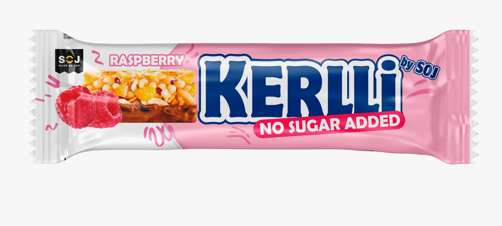 Яркий малиновый аромат и злаки в полезном и сбалансированном снэке.