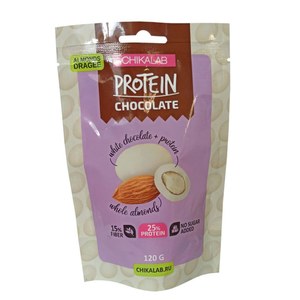 Шоколад белый (водорастворимые волокна кукурузы, масло какао, какао тёртое, молоко сухое обезжиренное, эмульгатор (соевый лецитин), ароматизаторы натуральные, подсластитель (сукралоза))