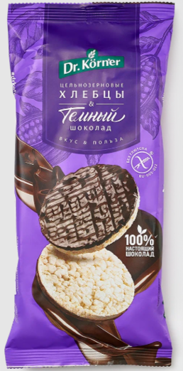 Хлебцы Dr.Korner рисовые с темным шоколадом, 67г.