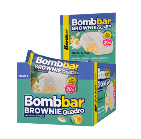 Протеиновые брауни от Bombbar - идеальное сочетание невероятного шоколадного вкуса и пользы натуральных ингредиентов! Каждый кусочек – это заряд энергии и строительный материал для ваших мышц, ведь в каждом печенье целых 20% белка! Протеин способствует росту и восстановлению мышечной ткани, что особенно важно при активном образе жизни и занятиях спортом. Белок является важным элементом питания, который помогает в поддержании чувства сытости и сохранении мышечной массы в процессе похудения. Brownie не содержит сахар и глютен, что делает его идеальным выбором для людей, следящих за своим здоровьем и фигурой.
