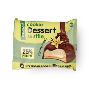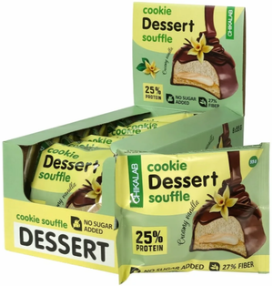 Протеиновое печенье в шоколадной глазури с нежным суфле и изысканной начинкой Cookie Dessert Souffle от компании Chikalab отлично дополнит ваш рацион питания и станет прекрасным перекусом для тех, кто заботится о своей фигуре. Каждая порция содержит 14 грамм белка из сывороточного и молочного протеина. Низкое содержание углеводов в печенье позволит легко дополнить им любую диетическую программу питания.