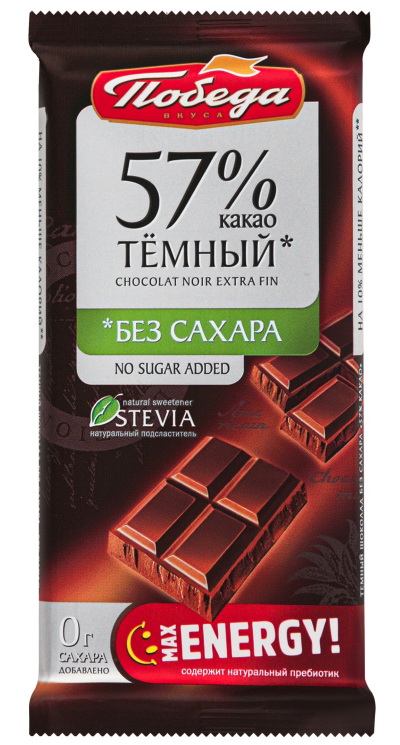 Эксклюзивная серия некалорийного шоколада без сахара с медовой травой Стевией просто идеальна для полноценной и здоровой жизни. В ней на 12% меньше калорий и 0% сахара.В этой серии также представлены 3 самых популярных вида: Горький 72% какао, Десертный 57% какао и Молочный 36% какао. В них максимум пользы и вкуса, ведь Стевия в 300 раз слаще обычного сахара, а по результатам исследований ВОЗ это растение очень эффективно при борьбе с диабетом и гипертонией. Шоколад Победа без сахара обладает превосходным, тонко сбалансированным вкусом. При дегустации вы почувствуете все многообразие оттенков какао, в том числе изысканное сочетание какао и нежного молока в Молочном (36% какао) шоколаде.Кроме Стевии шоколад этой серии содержит также растительный пребиотик инулин, нормализующий уровень сахара в крови и жировой обмен. Это прекрасный источник здоровой энергии в сочетании с премиальным вкусом и полезными добавками.