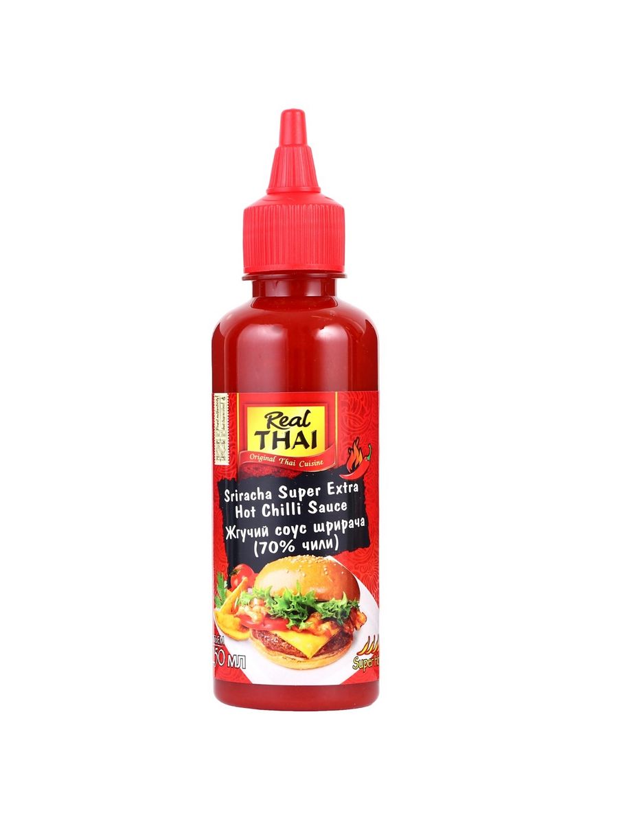 Острый соус Шрирача Aroy-D - потрясающее изобретение тайской кухни, которое покорило весь мир и удивляет своих почитателей со всех уголков планеты насыщенным острым вкусом со свежим чесночным оттенком. Он идеально подходит для использования при готовке мяса, рыбы и морепродуктов и оригинально украшает различные вегетарианские блюда. Если вы любите кулинарное разнообразие и следите за своим здоровьем, эта приправа станет частой гостьей на вашем столе. Соус Шрирача был создан в начале 20 века жительницей одноименного портового городка в Таиланде, расположенного на берегу Сиамского залива. Именно здесь предприимчивая хозяйка начала готовить деликатес, который вскоре стал популярным на всей территории Тайского королевства. Соус получают путем длительной ферментации свежих перцев чили халапеньо с чесноком. В полученную жидкость затем медленно прибавляют сахар, соль и уксус. Это придает ему особый пряно-солено-острый вкус с нотками умеренной жгучести. Перец чили - уникальный овощ, в состав которого входит множество полезных веществ. Главное из них - капсаицин, который отвечает за его неповторимый острый вкус и аромат. Он оказывает следующие эффекты на организм человека: согревает, дарит ощущение тепла, покоя и расслабленности; улучшает кровообращение во всех тканях тела, ускоряет пульс, усиливает силу сокращений сердечной мышцы; усиливает секрецию желудочных желез, за счет чего увеличивается выработка соляной кислоты и улучшается пищеварение; активирует перистальтику кишечника, защищает организм от токсинов; способствует выработке эндорфинов в головном мозге, которые повышают настроение и креативность, облегчают боль любой локализации; ускоряет метаболизм в каждой клетке; стимулирует процессы иммунного ответа, повышает устойчивость к негативным факторам среды; уверенно борется со стрессом; обладает антибактериальным и антипаразитарным воздействием.