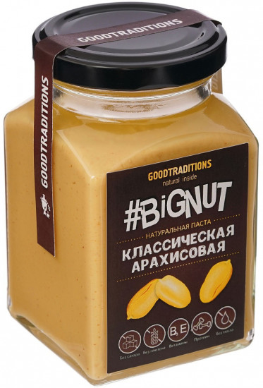 Классическая арахисовая паста сделана из высококачественного арахиса, без добавлений подсластителей, ароматизаторов и прочих добавок, ее можно смешивать с медом, добавлять сиропы или сделать соленой.